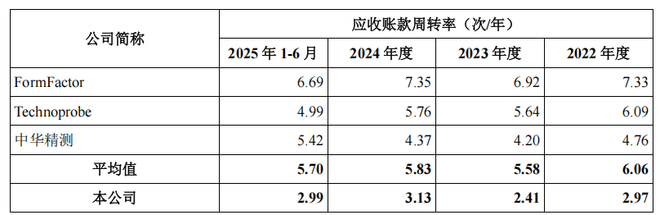 招股书显示,2022年至2025年上半年,强一股份应收账款周转率分别为2.97次/年、2.41次/年、3.13次/年、2.99次/年,同一时期内行业均值分别为6.06次/年、5.58次/年、5.83次/年、5.70次/年。