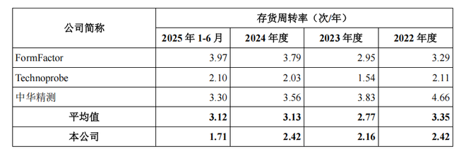 此外,强一股份存货周转率也低于行业均值。2022年至2025年上半年,强一股份存货周转率分别为2.42次/年、2.16次/年、2.42次/年、1.71次/年,同一时期行业均值分别为3.35次/年、2.77次/年、3.13次/年、3.12次/年。