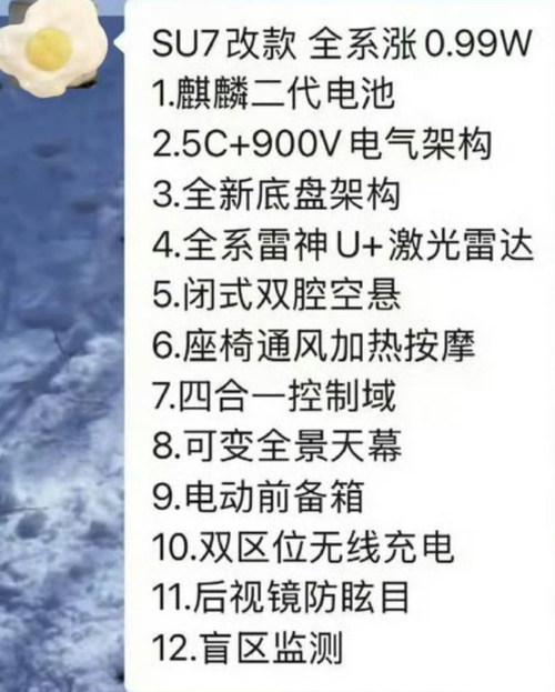 关于小米SU7改款的消息,有传闻称其配置和价格保持不变,对此,客服回应表示,目前尚未有确切的官方消息公布,因此不能确认这些传闻是否属实,关于产品的具体配置和价格,建议消费者关注官方渠道以获取最新信息,提醒消费者在购买前仔细了解产品信息,以确保自己的需求和预算得到合理满足,针对小米SU7改款传闻,客服表示尚未有确切官方消息确认配置和价格是否不变,建议消费者关注官方渠道获取信息,购买前了解产品信息以确保需求得到合理满足。