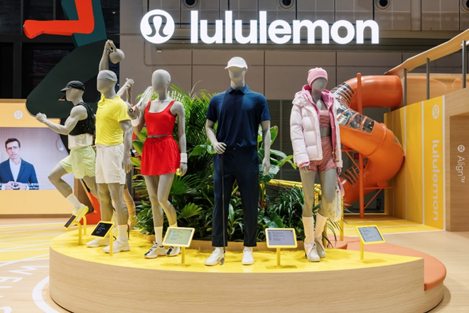 11月5日,第八届中国国际进口博览会开幕。露露乐蒙(lululemon)以“好状态趣动场”为主题再度参展,在6.2馆搭建双层空间,借“游乐场”式动线展示瑜伽、跑步、训练、网球、高尔夫与日常出型六大品类,并以艺术装置“跑者缩影”引导观众进入展区。