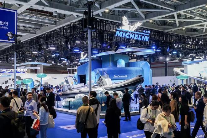同时米其林71%可持续轮胎亮相现场设置八个沉浸式场景,其中由子公司Flexible Composite Group(FCG)打造的刚性充气艇完成中国首展。