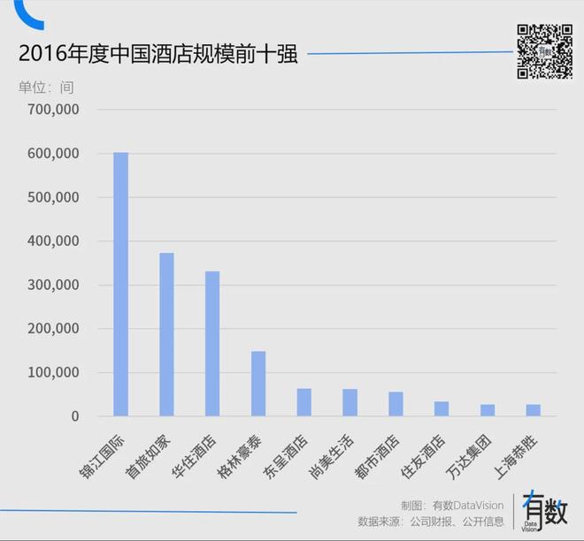 2016年,国内前十大酒店集团中,锦江、首旅、华住三巨头的房间数量占比已经达到75%。