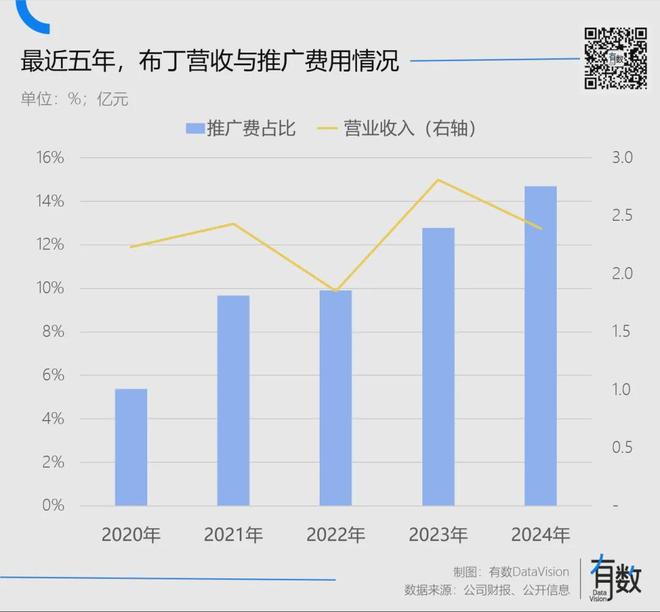 从布丁的财报看,过去五年,布丁用来投流的推广费整体提高了近2倍,但同期营收仅增长0.15亿,同比增幅7%,进一步显示了经济型酒店需求的整体萎缩。