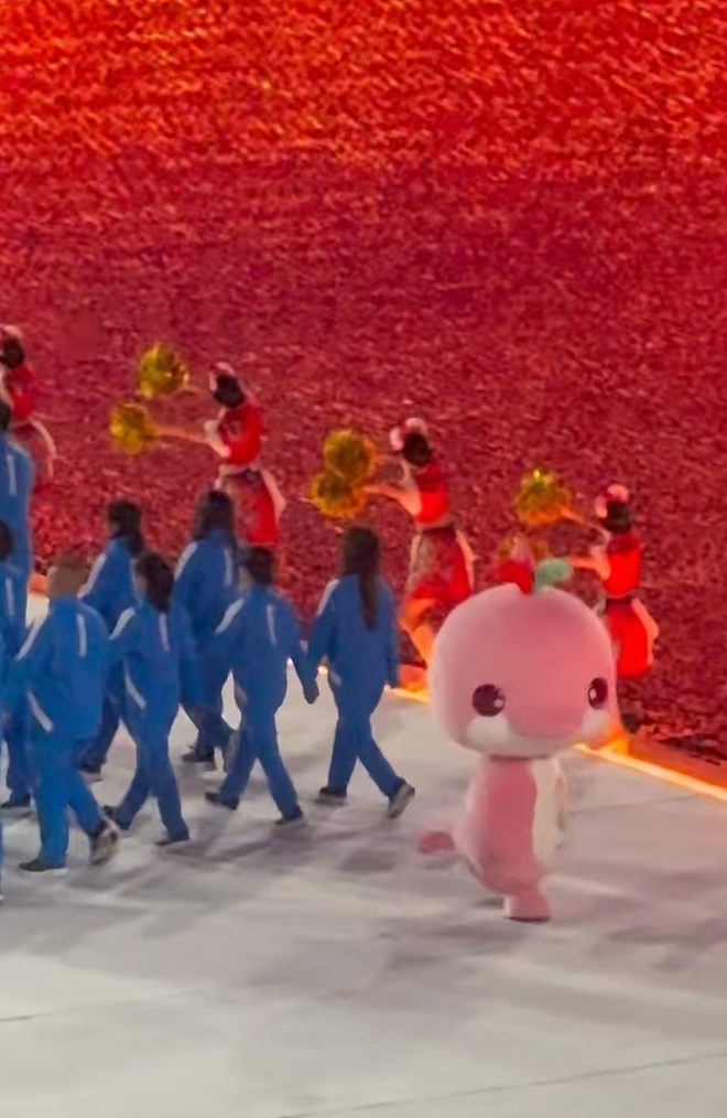 11月9日,第十五届全国运动会在广州开幕,吉祥物“大湾鸡”跟随运动队出场,成了全场最忙的角色。