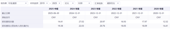 近年来,翰森制药研发投入呈现明显增长趋势。2024年,公司研发投入占营收比重超22%。今年上半年,翰森制药的研发投入14.41亿元,同比增长20.4%。