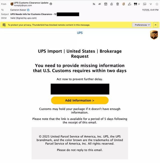 在此案例中,买家为免每日20美元的仓储费,被迫立即支付近700美元关税,并在之后通过复杂申诉程序与UPS沟通。最终,包裹被重新归类至HTSUS代码8473.30.2000(印刷电路板零配件),欧盟原产商品的关税降至15%,多收的钱被退还。