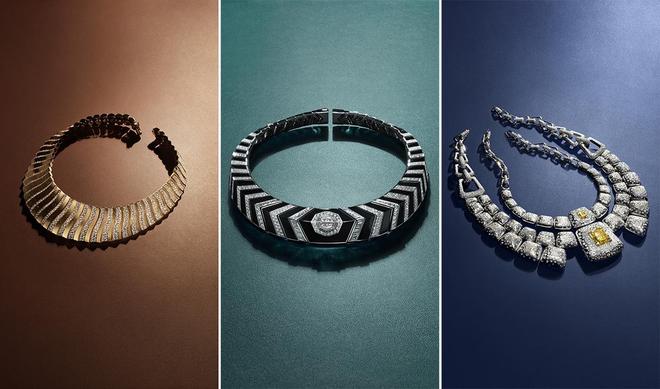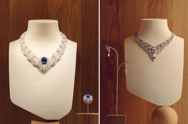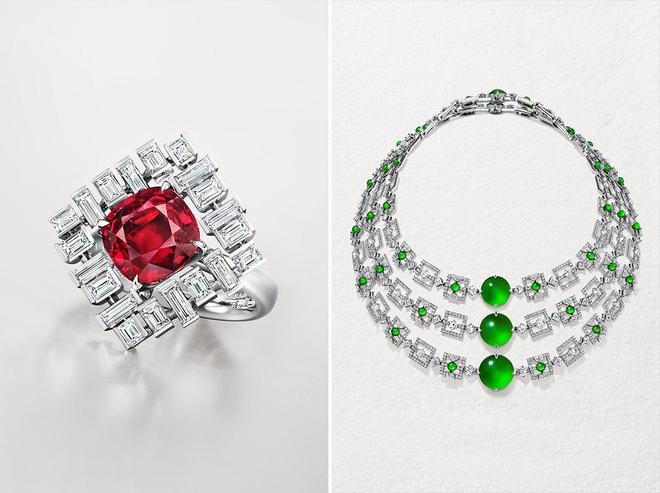 周大福"和美东方Timeless Harmony"高级珠宝系列,"宫宇御韵"(左)、"瓦影绘韵"作品