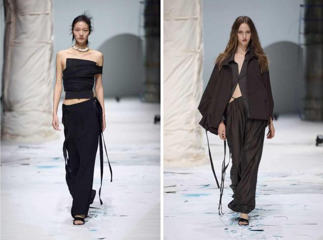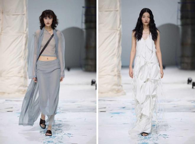 场内没有传统音乐,只有细微的声响在空间里流动。像是建筑自己在呼吸,间或夹杂着几不可闻的人声呢喃,如同梦呓。服装在静默中展示着它们的存在,就像田野里的一切。衣服的颜色简单克制,低饱和,像是被正午阳光漂白过。任何多余的华丽装束都被摒弃。设计师说,这不是极简主义,而是一种"频率的稳定":当一个人的情绪、意志与身体达成一致,进入一个安静但坚定的内在共振状态。