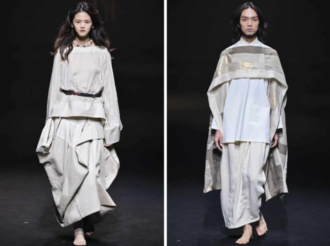 这种感性的结构深度,很大程度上受到韩国背景的影响。像包袱布(bojagi)这样的传统物件,平铺时是二维的,但通过折叠或系绑,它可以演化成几十种三维形态。东方构图方法对留白的强调,以及韩国文化中将叙事凝结为情感的感性,都是她所携带的美学资产。这种文化感知不仅体现在造型元素上,也渗透进服装的廓形与结构,甚至具体到缝线的走向。