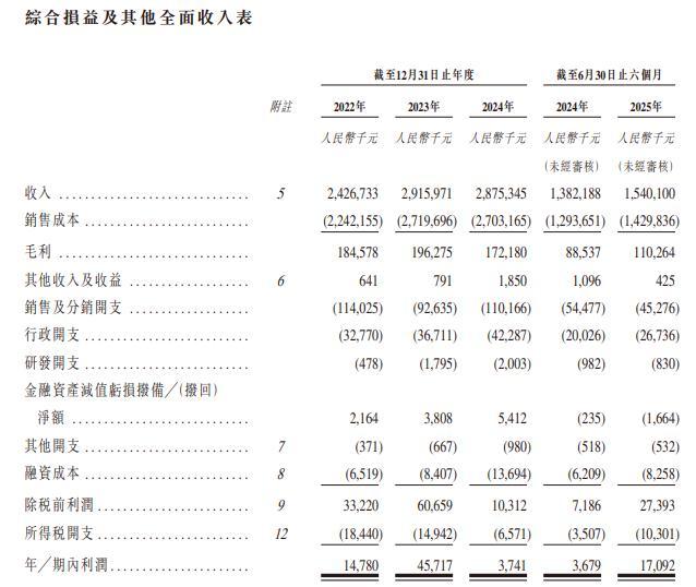 翻看其过往业绩可以发现,这家公司的业绩波动较大。2022至2024年及2025年上半年,融泰药业实现收入分别约为24.27亿元、29.16亿元、28.75亿元及15.40亿元;同期利润分别为1478万元、4571.7万元、374.1万元以及1709.2万元。
