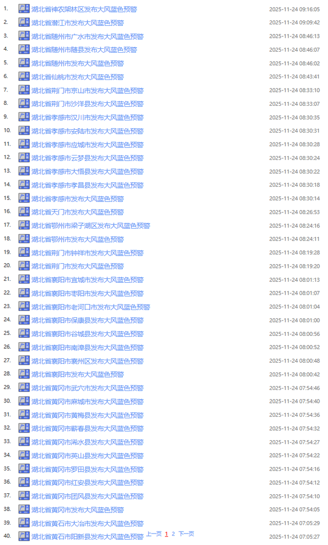 湖北省气象台2025年11月24日05时53分发布大风蓝色省级预警。
