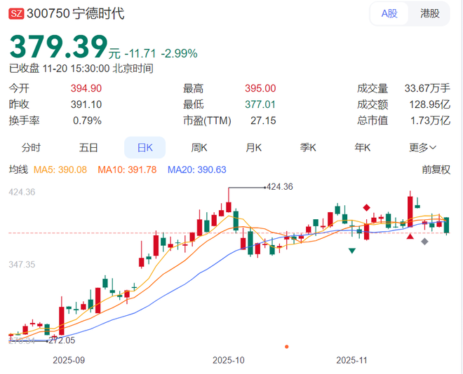 "连创始团队都开始卖,我还敢拿吗?"11月17日开盘前,宁德时代散户群里跳出一句感叹。自嘲被量化成冷冰冰的数字:最近几个交易日,宁德时代股价跌跌不休。