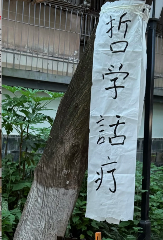 哲学咨询的摊位一般相当简陋。街边摆两个塑料凳,一张折叠桌,你路过了,不打针不吃药坐下就是跟你唠,主打话疗。