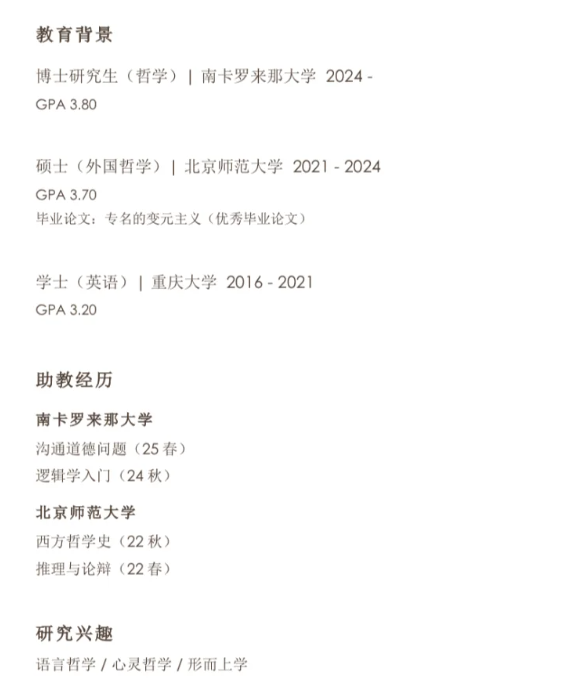 当然也有一些咨询师是科班出身:比如有哲学咨询师晒出了自己的中山大学哲学系博士学位论文,研究主题是尼采的艺术哲思;也有南卡罗来纳大学毕业的哲学博士(GPA 3.8)在社交平台上发帖,“接哲学咨询/辅导”。