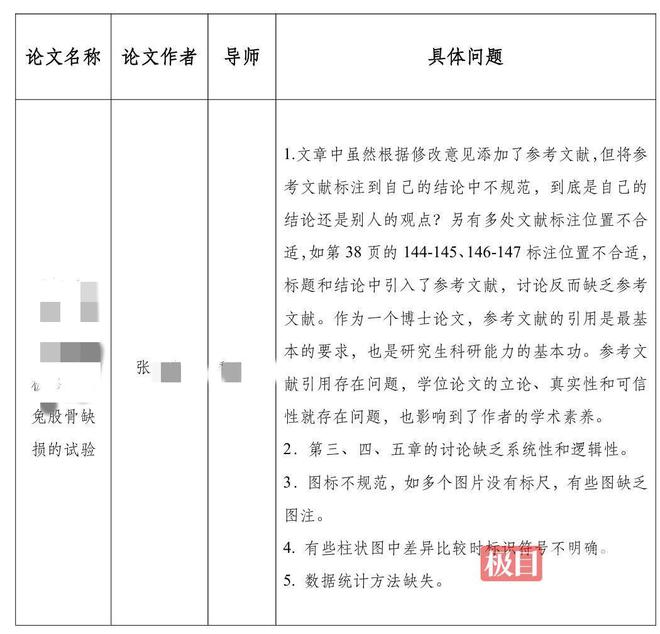 附件指出了张先生论文存在的问题。一方面是,文章中虽然根据修改意见添加了参考文献,但将参考文献标注到自己的结论中不规范,到底是自己的结论还是别人的观点?另有多处文献标注位置不合适,标题和结论中引入了参考文献,讨论反而缺乏参考文献。作为一篇博士论文,参考文献的引用是最基本的要求,也是研究生科研能力的基本功。参考文献引用存在问题,学位论文的立论、真实性和可信性就存在问题,也影响到了作者的学术素养。另一方面是,论文第三、四、五章的讨论缺乏系统性和逻辑性,图标不规范,有些柱状图中差异比较时标识符号不明确,数据统计方法缺失。对于指出的问题,张先生认为,这是“鸡蛋里挑骨头”。